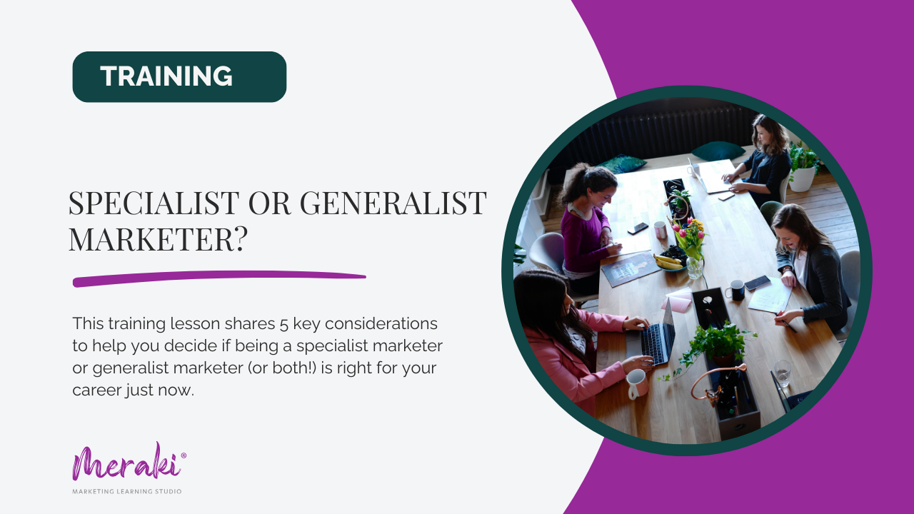 This training outlines 5 considerations for being a specialist vs generalist marketer.